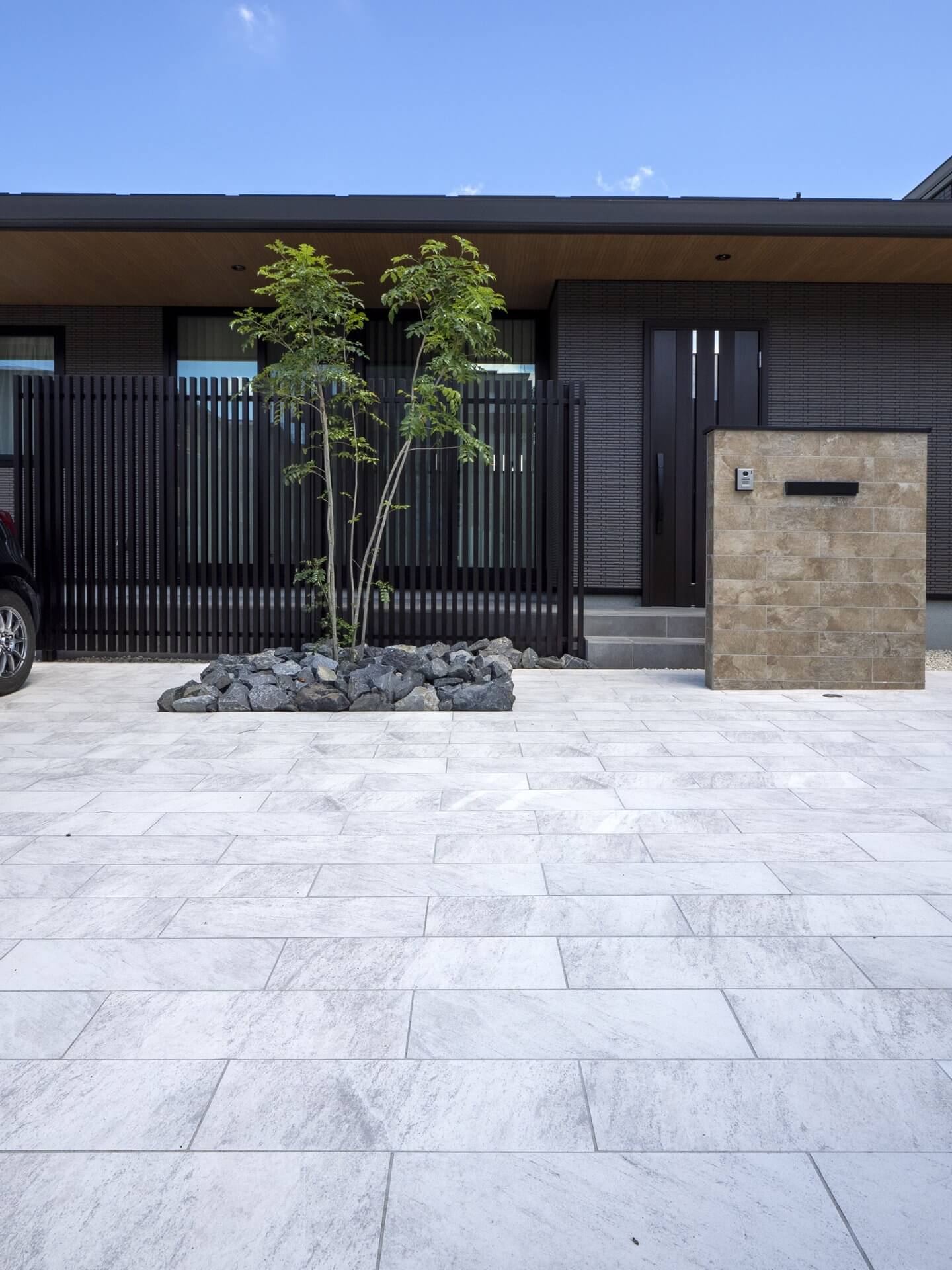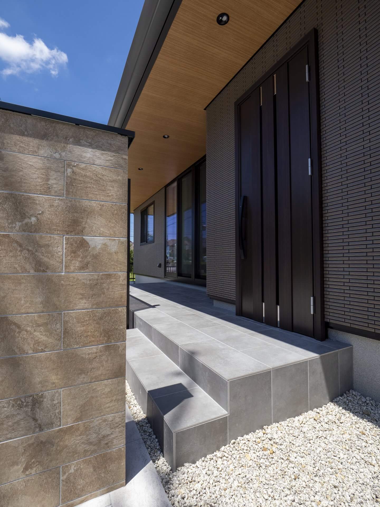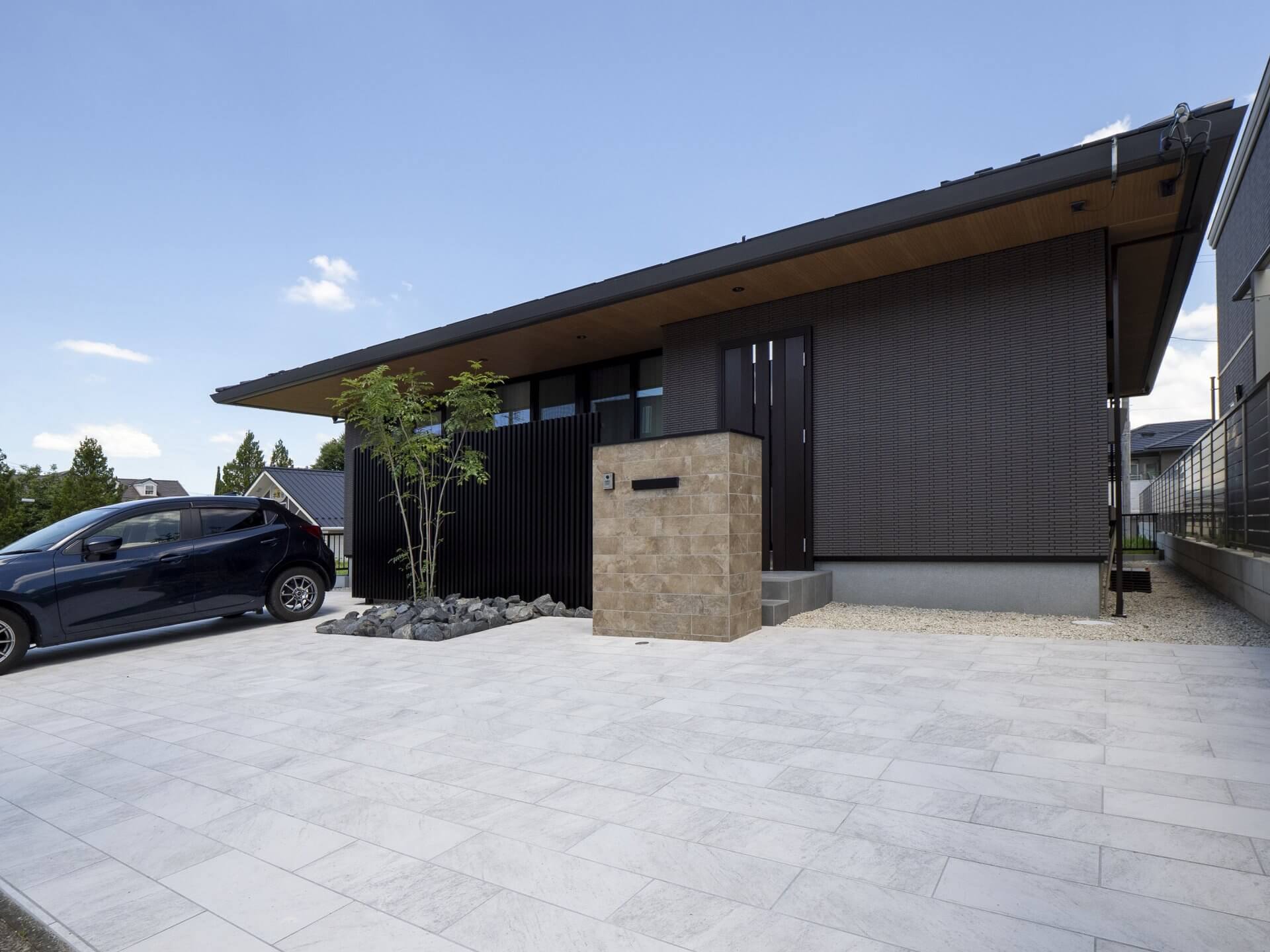シンプルな外構が全体の印象を引き締める平屋
